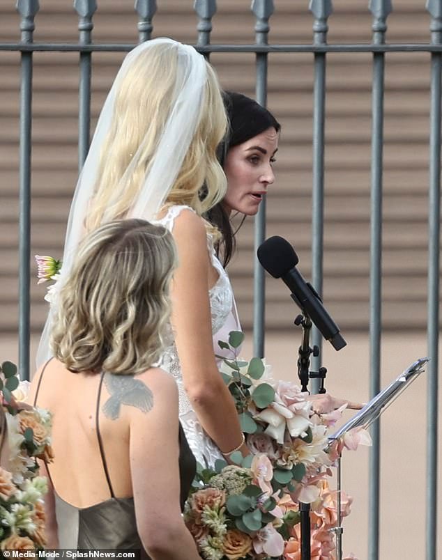 La hija de la estrella de amigos, Coco Arkoyet, de 20 años, se paró junto a la novia parada junto a su famosa madre y sirvió como novia