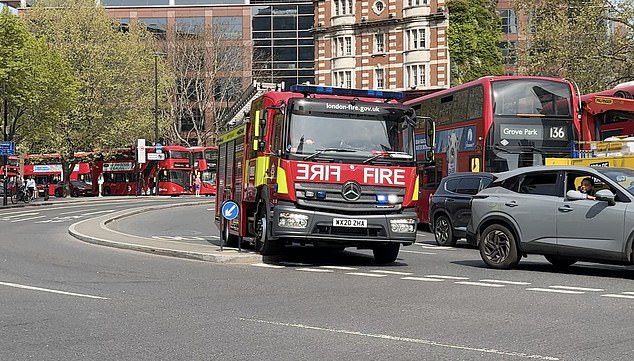 El camión de bomberos no pudo pasar el camión de bomberos hasta que la policía no llegó a la escena e intentara llevar al equipo. MailOnline se ha puesto en contacto con la policía metropolitana para hacer comentarios.