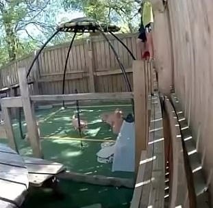 El video muestra que un niño está entrando en un bolígrafo en un bolígrafo de 1.8 metros y entra en un bolígrafo con un litro de cachorros de recuperación de oro antes de un golpe, y el miércoles 1 al mediodía del miércoles 1 del mediodía antes de que puedan ser jigados ante la niña al otro lado de la cerca.