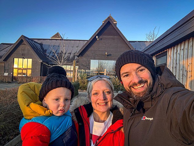Edward Bull, de 44 años, (en la foto con su esposa e hijo) fue testigo de la “muy triste” muerte de una cebra en el zoológico de Colchester esta tarde, donde el animal fue brutalmente atacado por un rinoceronte.