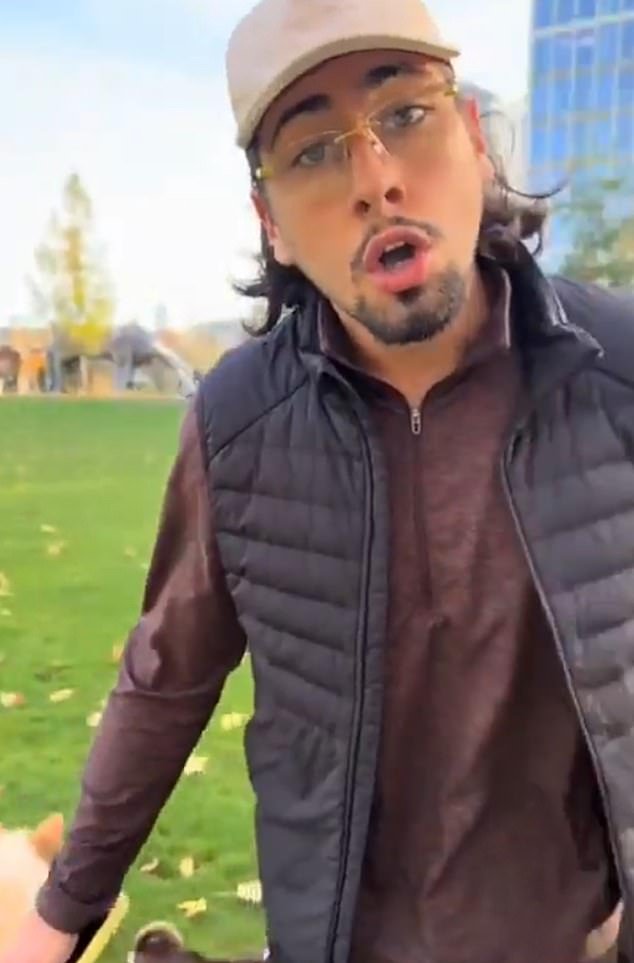 En un segundo vídeo compartido con MailOnline, gritó: ‘Camina por donde vives’. ‘¿Qué vas a hacer? Tus perros corretean por ahí… ni siquiera puedes controlarlo.’