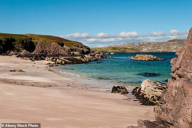 Una playa en la isla al otro lado del estrecho de Handa en Sutherland