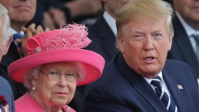 Trump es retratado con la Reina en memoria del 75 aniversario de Landing en Portsmouth en 2019 en 2019. Dice que se unió al difunto Rey “increíblemente” mientras viajaba al Reino Unido en 2019