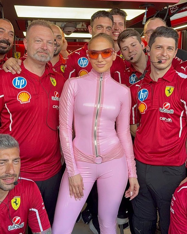 Jennifer López da un detalle detallado después de pose para una foto en su garaje, lo que avergonzará a un miembro del equipo de Ferrari.