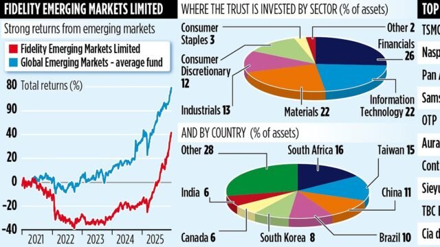 “Las estrellas están muy alineadas para los mercados emergentes en este momento”, afirma. ‘Los fuertes precios de metales como el oro y el cobre -a pesar de las recientes caídas- están actuando como un viento de cola, al igual que la demanda de las empresas tecnológicas estadounidenses de semiconductores producidos por empresas como TSMC de Taiwán y Samsung Electronics de Corea del Sur.