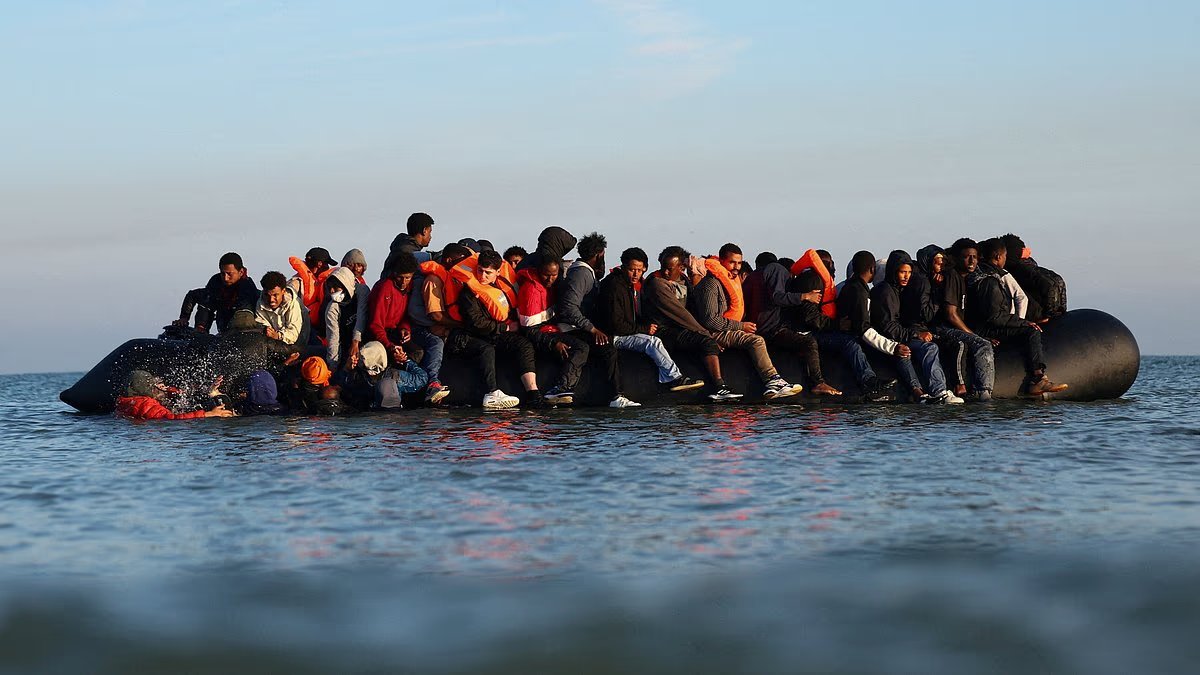 Migrantes en un bote inflable intentando cruzar el Canal de la Mancha