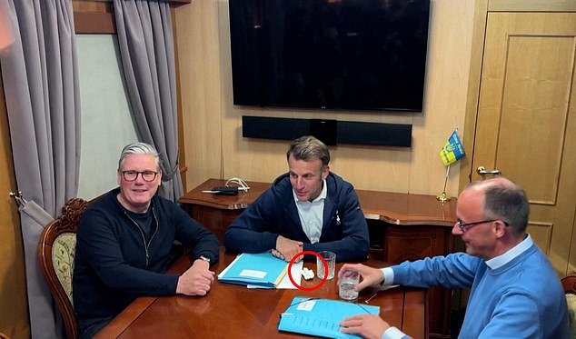 Francia respondió a una afirmación ‘falsa’ de que el presidente Emanuel Macron había escondido una bolsa de cocaína mientras tomaba una foto con cuidado Starmar y el alemán Fredrich se fusionan el fin de semana.