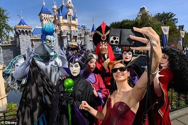 Gal Gadot, de 39 años, se unió a otros villanos de Disney mientras promocionaba su nueva foto de muy solo en Blancanieves en Anahim’s Disneyland Resort en California el domingo