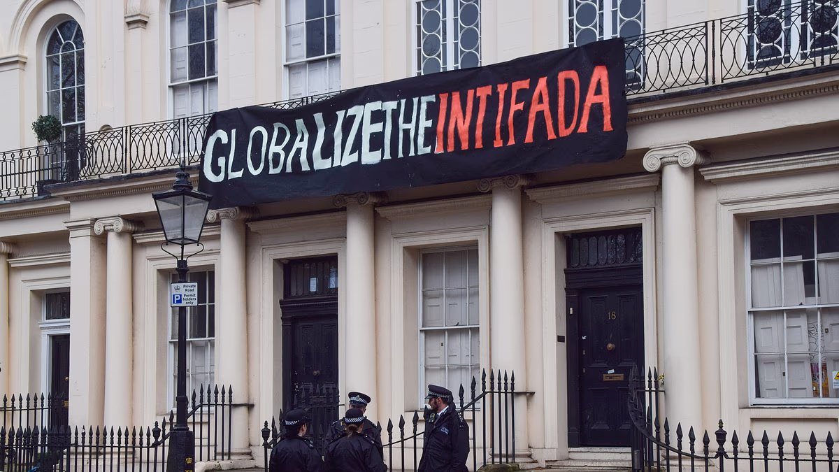 Una pancarta con el lema “Globalizar la Intifada” en Regent’s Park, en el centro de Londres.