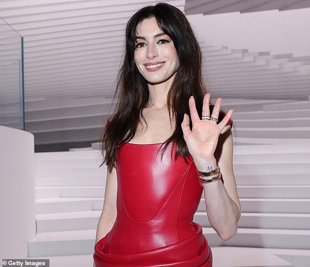Ropa elegante: Versus, vestida por la actriz Ann Hathaway (ilustrada), fue fundada por los fallecidos versos de Gianni en Milán en 1978