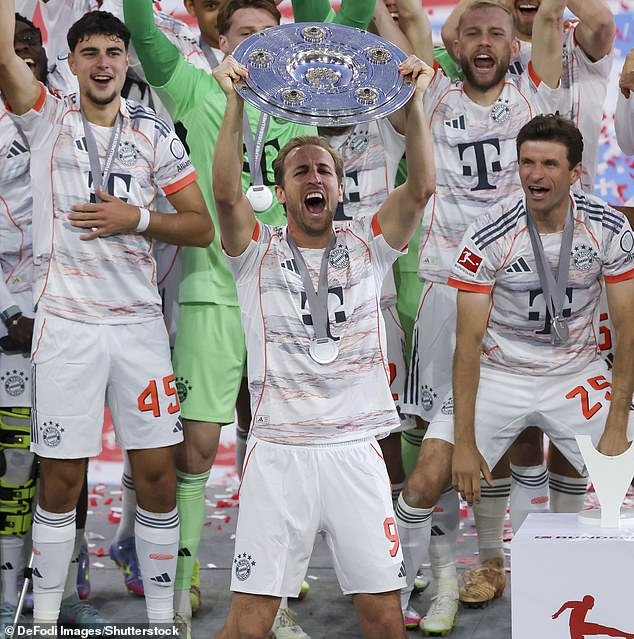 Bayern Munich Bundesliga ganó a Harry Kane Kian Kane recogiendo el primer trofeo de su carrera