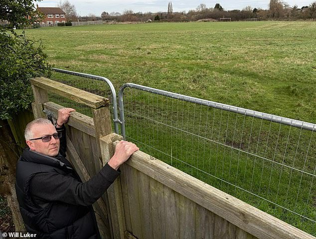 El residente Mark Palmer dijo que el acceso al campo aún era posible, justo antes de Navidad, la cerca estaba arriba, pero en enero fue empujado a su propiedad a la derecha.