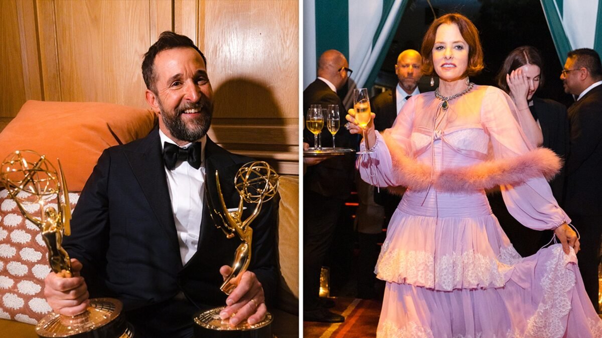 Los ganadores de Amy miran preparados en la fiesta … Seth Rosen Appleive+ una fiesta y luego se considera que sus trofeos posan para imágenes mientras pescan doble El gen es inteligente HBO se ríe de lo más alto después de todas las fiestas.