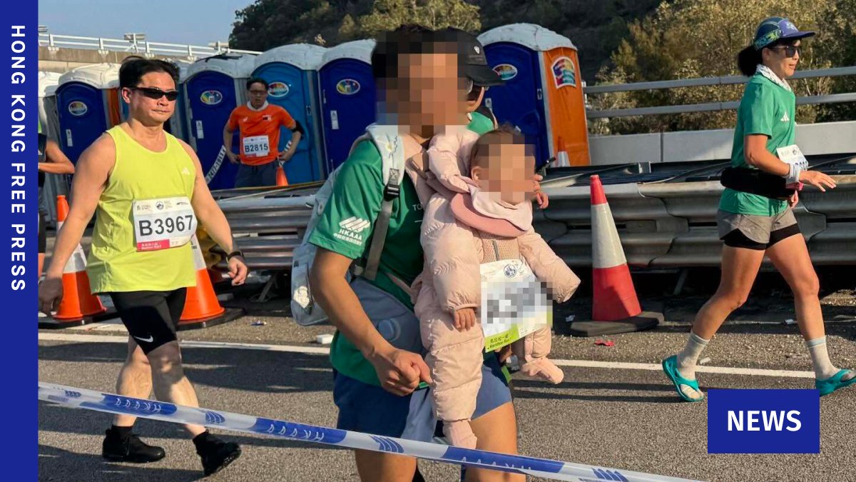 La policía de Hong Kong dijo el miércoles que estaba investigando un informe de presunto abuso infantil después de que un hombre participara en el maratón anual de la ciudad con un niño atado a su pecho.