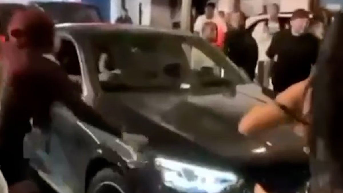 Si bien los eventos que condujeron al accidente aún no están claros, las imágenes muestran a una mujer en el automóvil, golpeando tanto a un hombre como a una mujer.