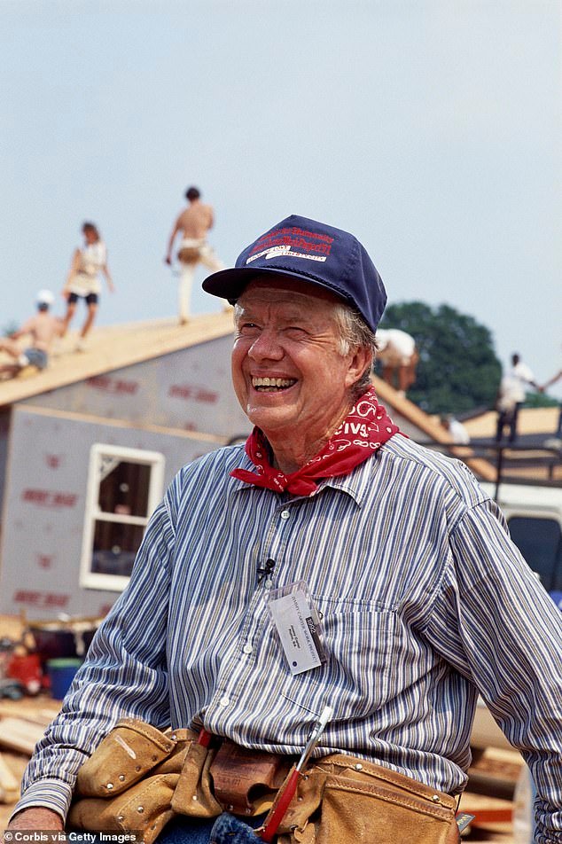 Da una semana al año a Habitat for Humanity, una organización benéfica que construye y renueva casas para familias pobres. Durante 35 años, ha ayudado a 4.390 hogares en 14 países, trabajando con su propio martillo y herramientas junto a Rosaline (que falleció el año pasado).