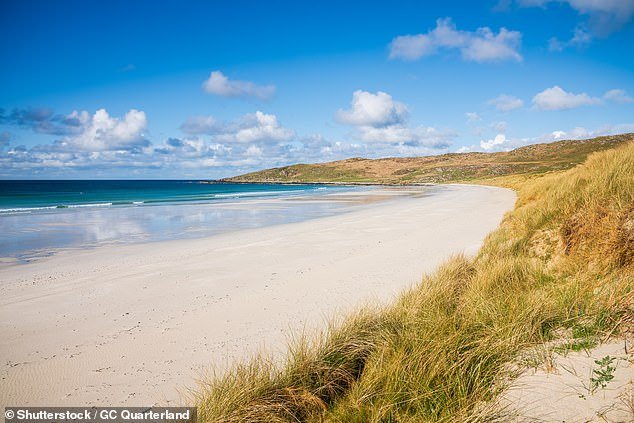 Según los turistas, una de las playas mejor calificadas de la isla de Balful Bay, cuando la playa de Balevulin tiene una ‘arena blanca brillante’.