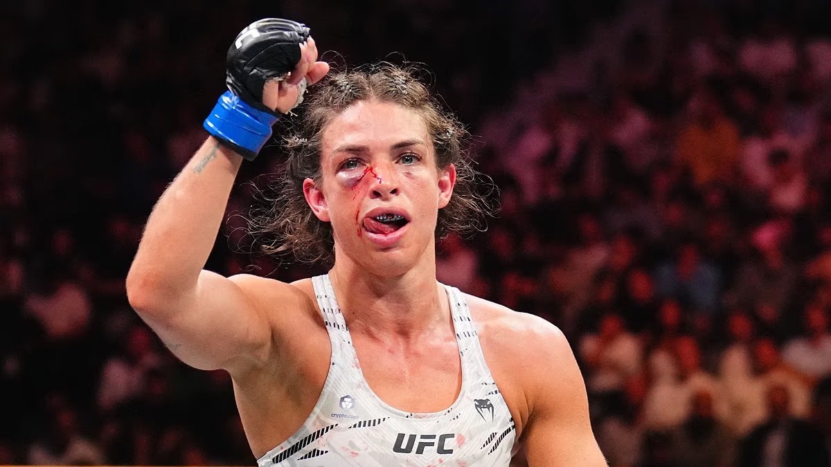 La estrella de UFC Mackenzie Dern sufrió cortes brutales e hinchazón en la cara el sábado por la noche.