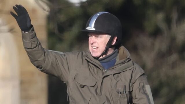 Andrew Mountbatten-Windsor saluda al público mientras se le ve montando a caballo en Windsor el sábado por la mañana.