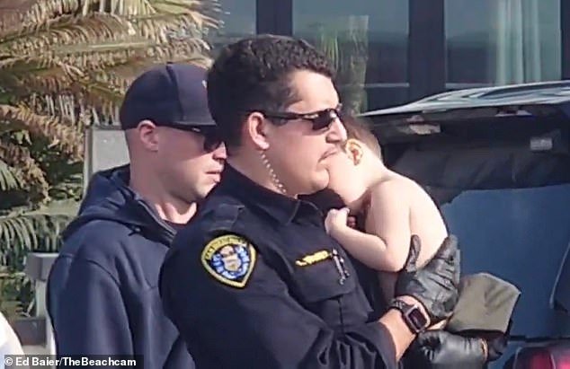 Las imágenes de la concurrida escena, capturadas por un transeúnte, muestran al oficial Werner sosteniendo al niño sin camisa contra su pecho, frotando su espalda con su mano enguantada afuera de la casa de Sunset Cliffs Boulevard.