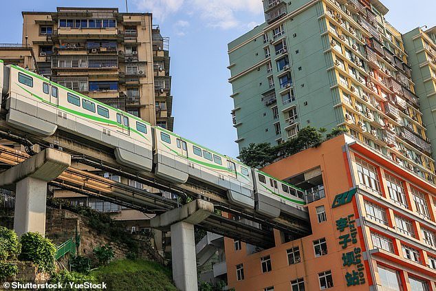 El sistema manial en los viajes de Chanking a través del edificio más grande e incluso alto del mundo (ilustrado arriba)