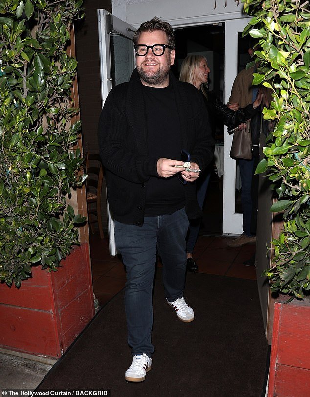 James Corden obtuvo toda la risa mientras disfrutaba de una cita con su esposa Julia Kerry en Ghorgio Baldi, Santa Monika el martes por la noche.