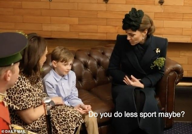 Kate Middleton discutió el amor de sus hijos por el fútbol durante una dulce conversación con el niño de siete años de un guardia irlandés en el Día de San Patricio ayer.