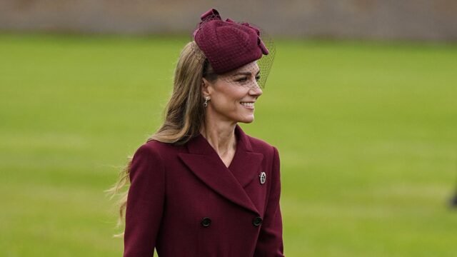 Kate llevaba un arco de satén con un arco de satén con un sombrero de Jen Taylor ‘Neso’ a juego en su elegante abrigo