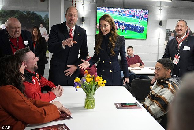 William y Kate se reunieron con jugadores en el estadio Principality antes de la colisión de las Seis Naciones de Inglaterra vs Gales el mes pasado