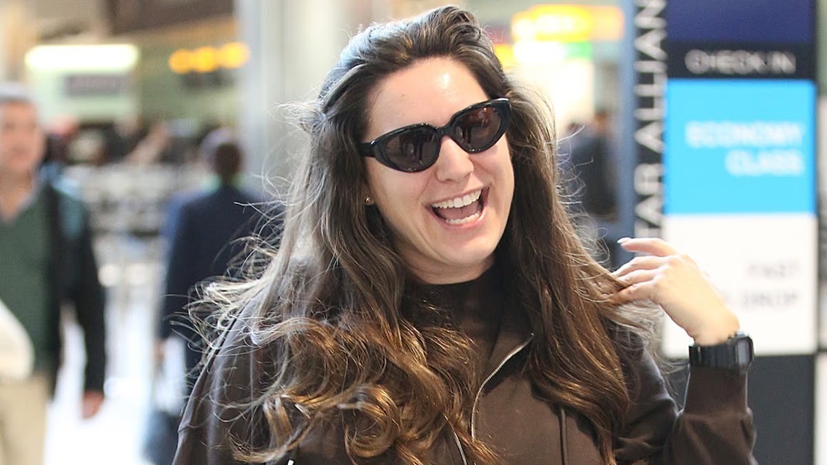 Protegiéndose los ojos tras unas gafas de sol glamurosas, la belleza fue ayudada con su equipaje, que estaba en lo alto de un carrito.