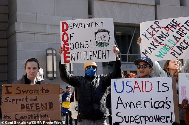 Alan Kasturi y las agencias fueron cerradas a los manifestantes de los empleados fuera de la sede de USAID de Washington DC el 28 de febrero para apoyar a los empleados