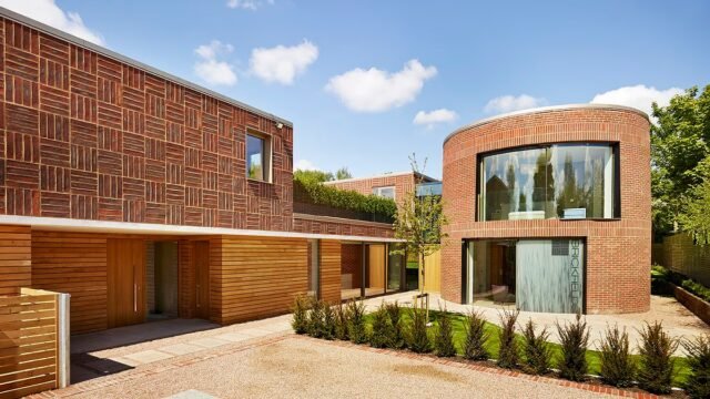 La casa de Hartfordshire contiene un llamativo exterior de ladrillo y ala redonda conocida como Kilan