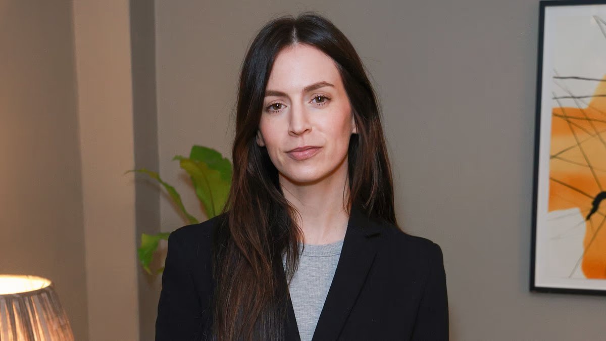 La presentadora de televisión Ashley James, de 38 años, sorprendió con el cabello teñido de castaño rojizo mientras lucía un look de tweed marrón con tacones blancos y un bolso de Gucci.