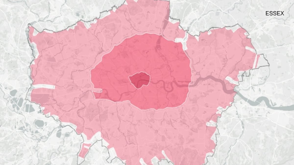 Esto significa que la ULEZ ahora se aplica a 32 distritos de Londres que cubren 1.500 kilómetros cuadrados (580 millas cuadradas) y alrededor de 9 millones de personas. La zona llega hasta las fronteras de los condados circundantes, incluidos Kent, Surrey, Essex y Hertfordshire.