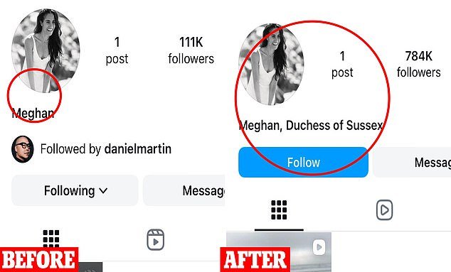 Meghan agregó a la duquesa de Sussex a su nueva cuenta de Instagram, con seguidores que pasaron de 111.000 a 784.000 en un día.