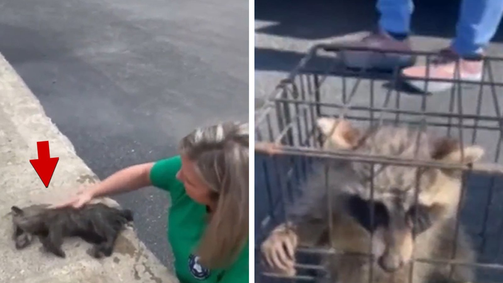 Animal Control respondió a la escena y luego un veterinario confirmó que el estante se alimentaba de Munshine Peach. Después de recibir líquido y algunas mantas cálidas, los peines Otis Campbell, liberados el Rackoon, de regreso al Wilde.