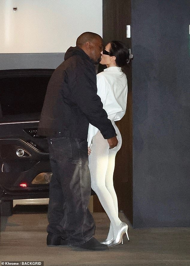 West lo persiguió después de la cena en Los Ángeles el martes, y la pareja se besó emocionalmente y detuvo el drama cuando Beanka acababa de cubrir legings.