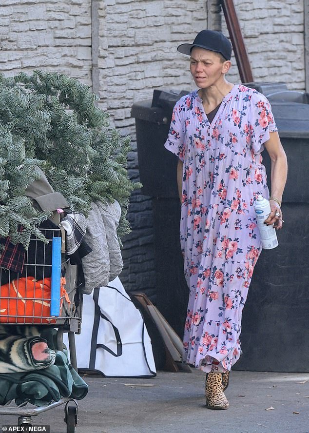 Wilson, de 41 años, ex esposa de la estrella de Baywatch Jeremy Jackson, revisó el contenedor de basura y sacó un árbol de Navidad.