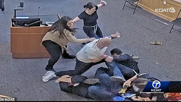 La violencia comenzó cuando Carlos Lurero (5) y 3 años, Pete Yassasi Bernalillo, saltó al Tribunal de Distrito del Condado y acusó a Alexander Segura Ortiz, sospechoso del asesinato de 20 años durante la audiencia del viernes.