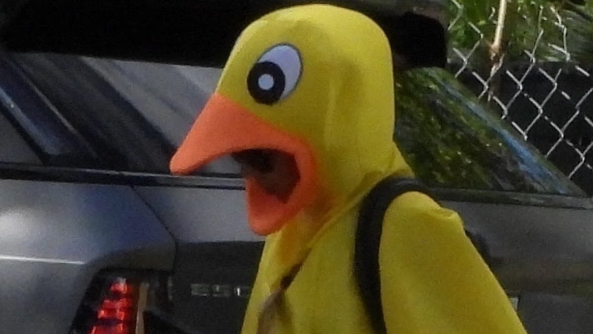 El vestido brillante ocultaba por completo la identidad de la mujer de 44 años, excepto por un pequeño hueco en la parte superior donde se podía distinguir su rostro con labios naranjas en el interior.