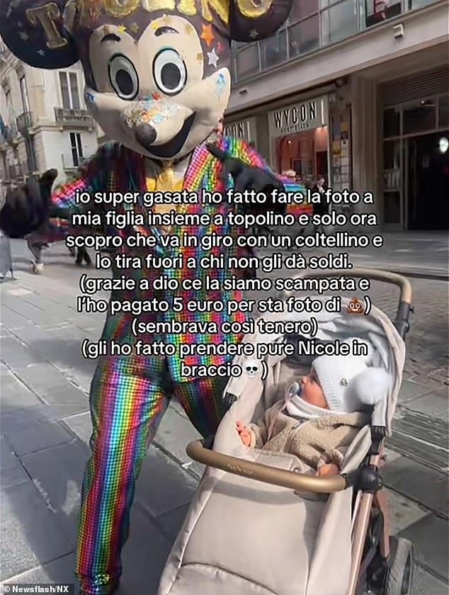 El diputado Borelli dijo: “Estamos recibiendo muchos informes sobre este tema que están disfrazados de Mickey Mouse, recolectan dinero de turistas y ciudadanos que toman fotos con él”