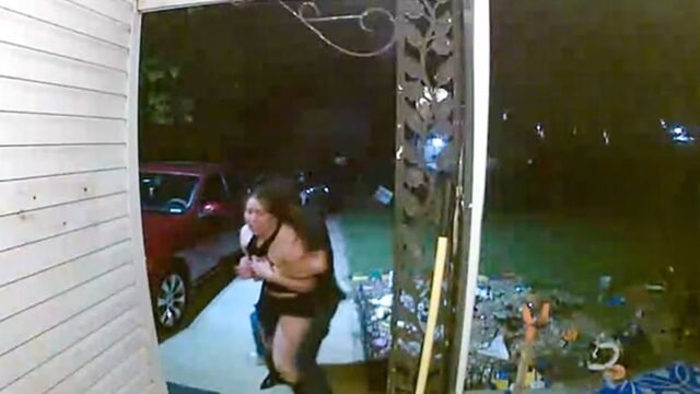 La mujer parece estar tratando de llegar a la puerta principal, pero el aparente atacante tiene el superpoder, quien la arrastró fuera de la escena de la cámara tan pronto como dos desaparecieron.