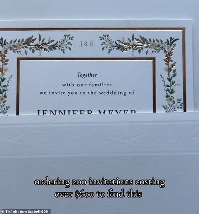 Jennifer ordenó 200 invitaciones de Mint el 5 de enero, dijo que había leído ’20 veces ‘a través de ellas e incluso recibió la prueba de su madre (imagen de stock)