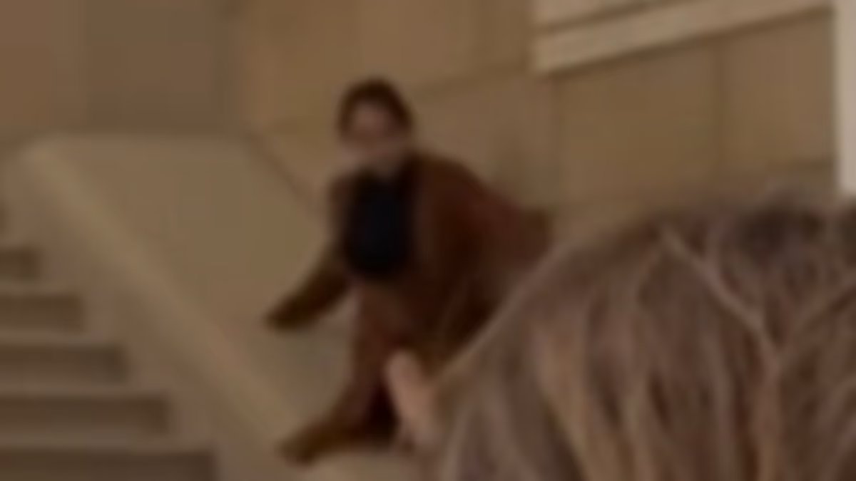 En un vídeo que se ha vuelto viral, se ve a una dama de honor volando a lo largo de una barandilla de mármol detrás de ella mientras la novia Laura hace su gran entrada con su padre.
