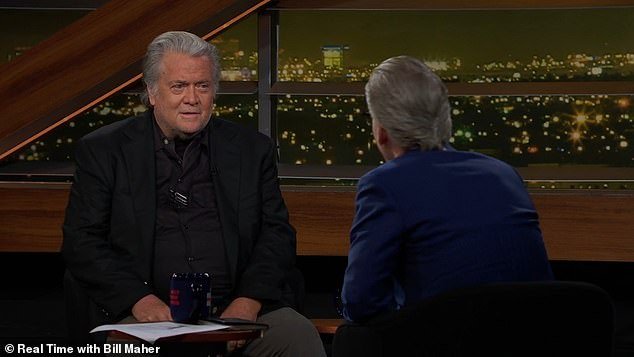 Bannon Bill Maher (ilustrado) aparentemente se sintió incómodo mientras daba un discurso detallado sobre este complot para mantener la Casa Blanca de Trump en 2021