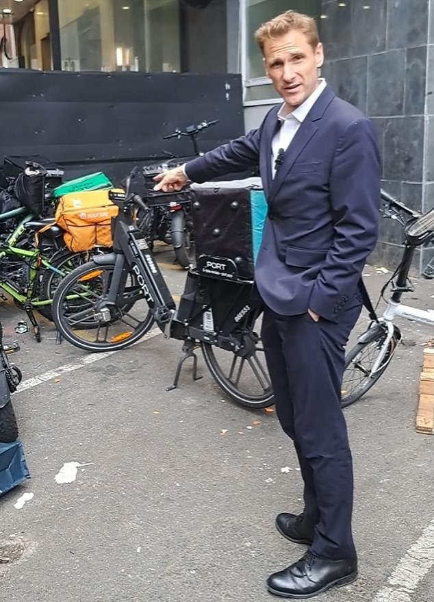 Secretario del Interior de la sombra Chris Philp Bikes de entrega de comida rápida Found Central London Shelter Hotel el mes pasado