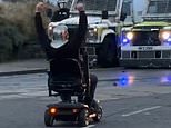 Un video se ha vuelto viral que muestra un jinete de scooter de movilidad en la desafiante policía antidisturbios.