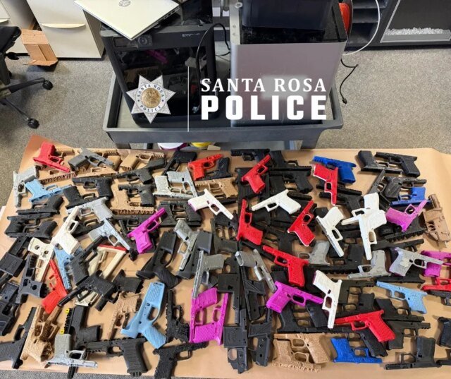 La policía de Santa Rosa dice que confiscó 167 armas de fuego y tres impresoras 3D en una investigación en curso el martes 10 de febrero que condujo al arresto de un hombre de Cloverdale acusado de fabricar y vender armas ilegalmente.