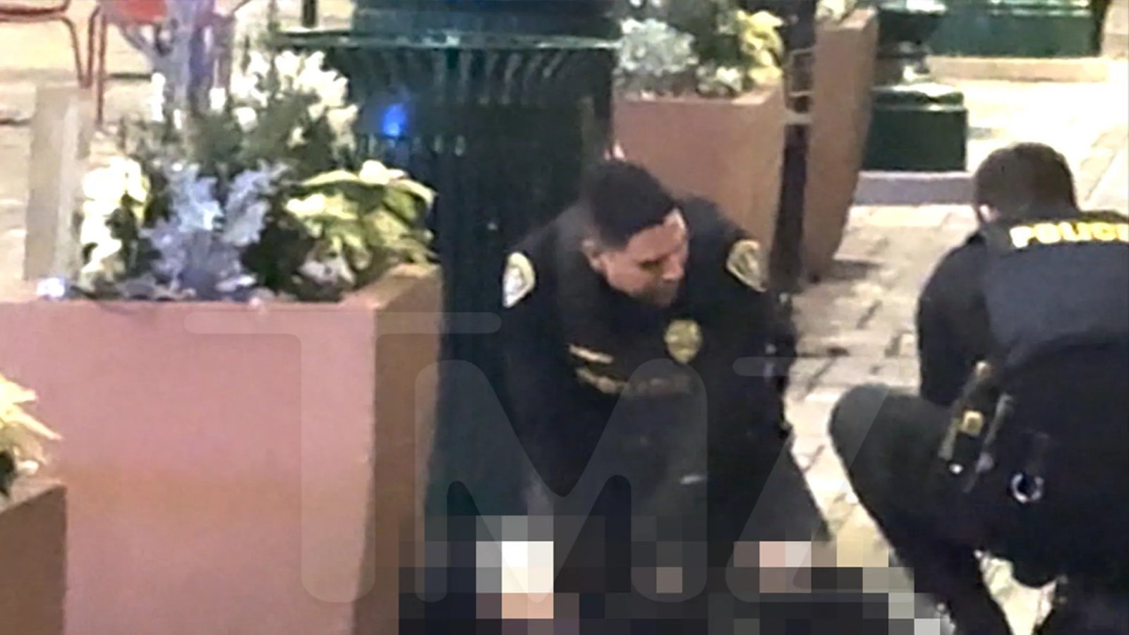 Mire el video recién publicado… Se puede ver a la policía sujetando el cuerpo de Tatiana mientras uno realiza compresiones rítmicas en su pecho sin vida el jueves pasado. Su cuerpo yacía en una pasarela junto a la zona de asientos al aire libre de un restaurante.