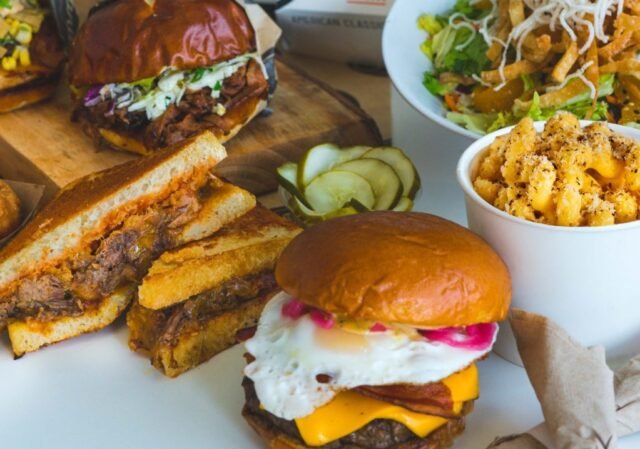 Con una nota clave “American Classics reinfinido”, el stand suministra hamburguesas creativas como hamburguesas de sopa de cebolla francesa, hamburguesa Havarti Shome, la gran fabricación azul con mezclas personalizadas de huellas de tiza (o pollo, pavo gound o verdón).